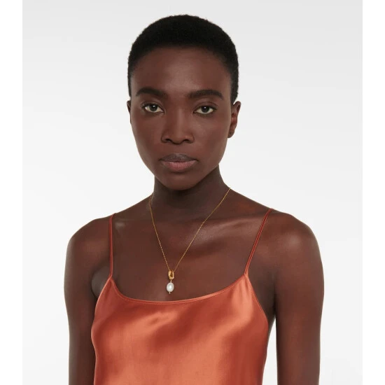 A single cultured pearls rests at the center of The Human Nature necklace from Alighieri. This beguiling accessory, which comes in a mix of fine and articulated 24kt gold-plated bronze, has been handmade in the label’s Hatton Garden studio in London.