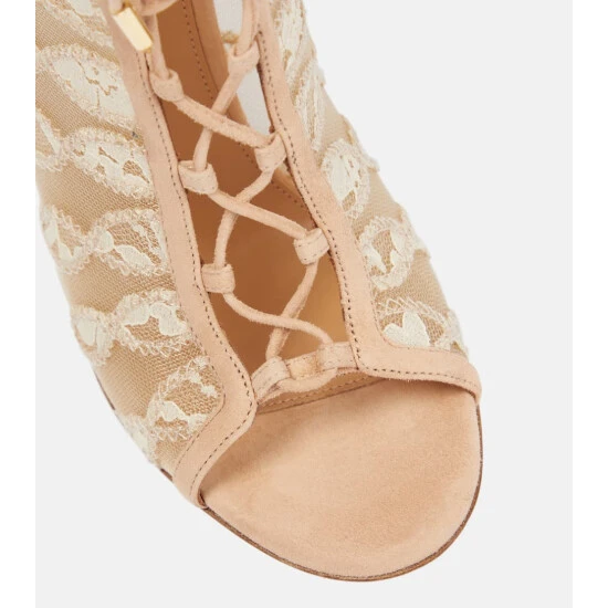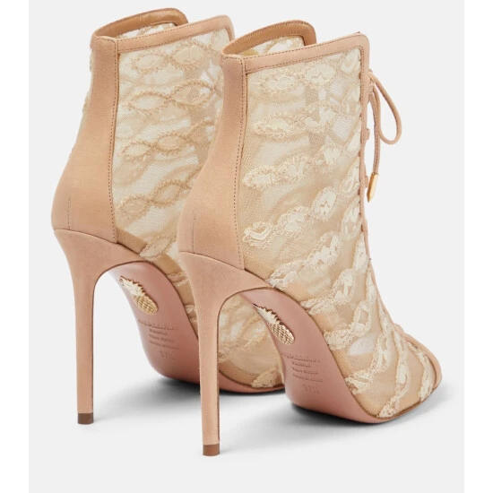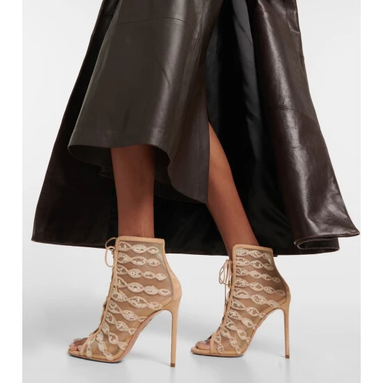 The After Dark ankle boots from Aquazzura are made from mesh uppers with lace details set on stiletto heels. The lace-up style have suede trims and open-toes.