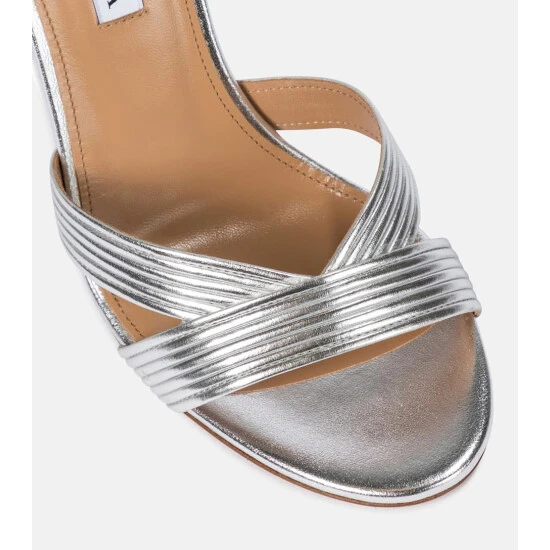 Aquazzura’s Ari 105 silver metallic sandals are so versatile, they will bring statement impact to a pared-back look for cocktail hour, or be the minimal finishing touch to formal black-tie looks. They’re made from soft lambskin leather and have slender rope ties that will wrap elegantly around the ankles.