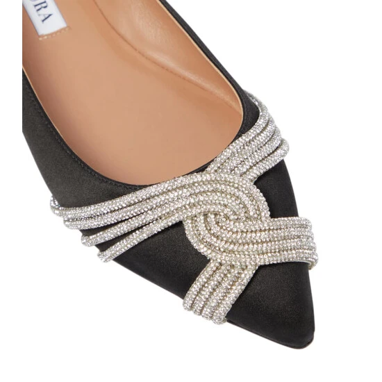 Aquazzura proves that flats can be as glamorous as pumps with the Gatsby pair. They’re made from lustrous satin with draping crystal embellishments over the pointed toecaps.