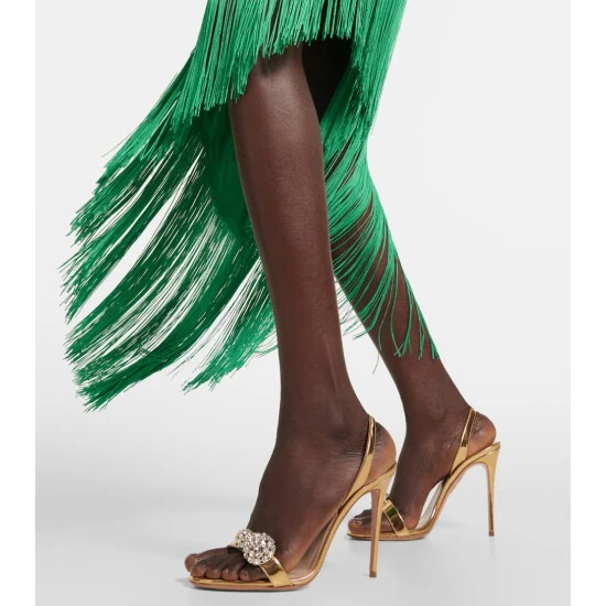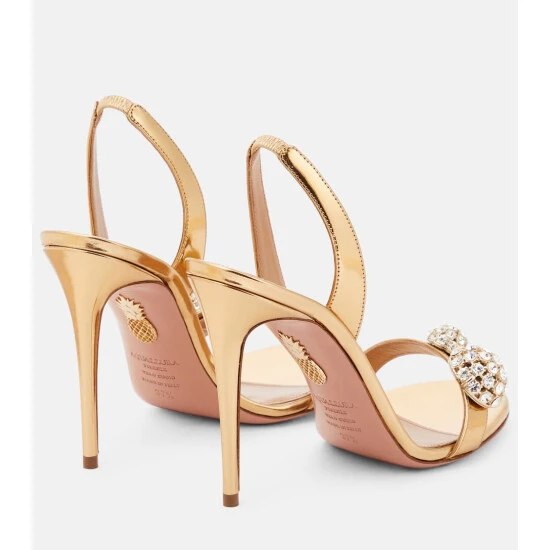 The Love Bubble sandals from Aquazzura are made in Italy from leather in an almond-toed design with an elasticated slingback strap. They are defined by dazzling crystal-embellished orbs on the toe straps.