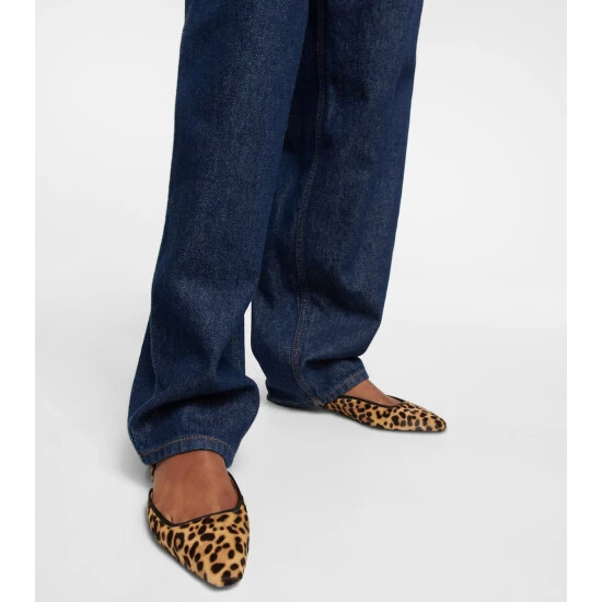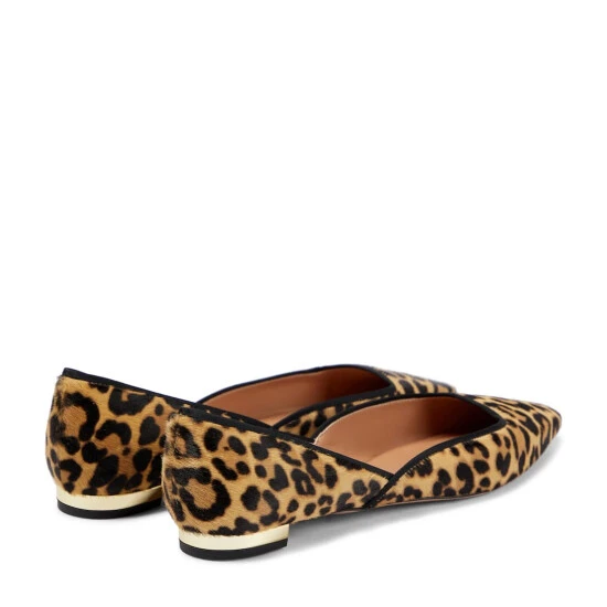 An Aquazzura shoe is a labor of love: a single pair can include over 30 components, each of which is hand-assembled by skilled artisans. The Maia ballet flats are made from leopard-print calf hair in a square-toed silhouette with toe caps and gold-tone heels.