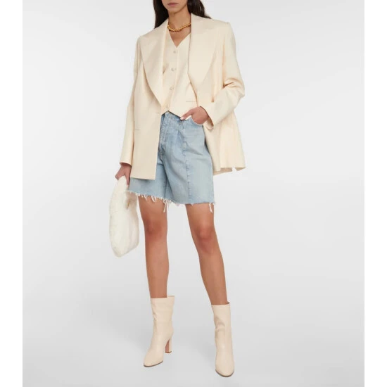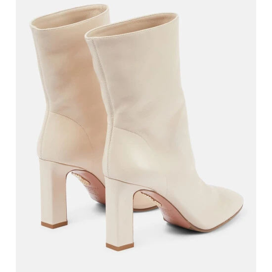 Aquazzura’s Manzoni ankle boots are made in Italy from lambskin leather. The white pair has almond-shaped toes and high block heels.