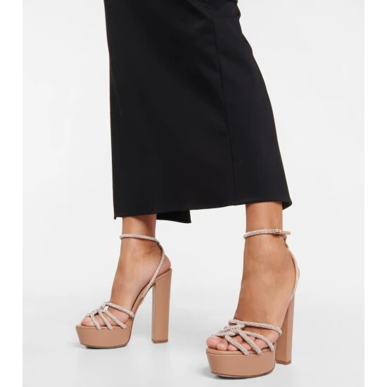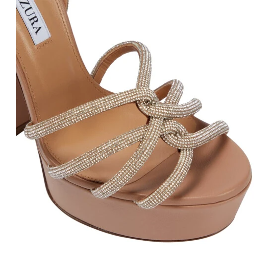 Soar to new heights in the glamorous Moondust Plateau 140 sandals from Aquazzura. Made from beige leather, the style features shimmery crystal-embellished straps and is set atop towering platform soles.