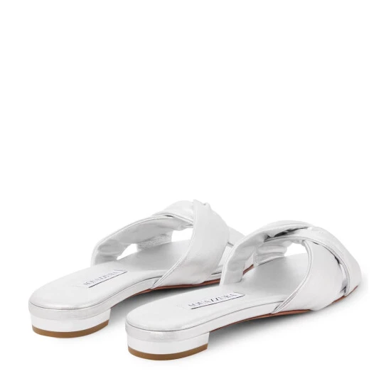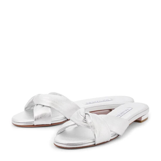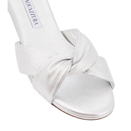 Aquazzura’s signature twist is on bold display with the Olie sandals. Made in Italy, the metallic leather uppers are maneuvered into a chunky twist and rest atop barely-there heels.