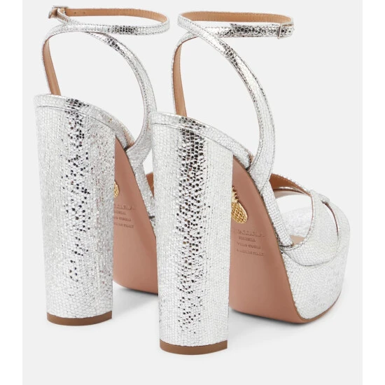 The Sinner sandals from Aquazzura are equal parts naughty and nice. They’re made from snake-effect metallic leather with platform soles and high block heels.