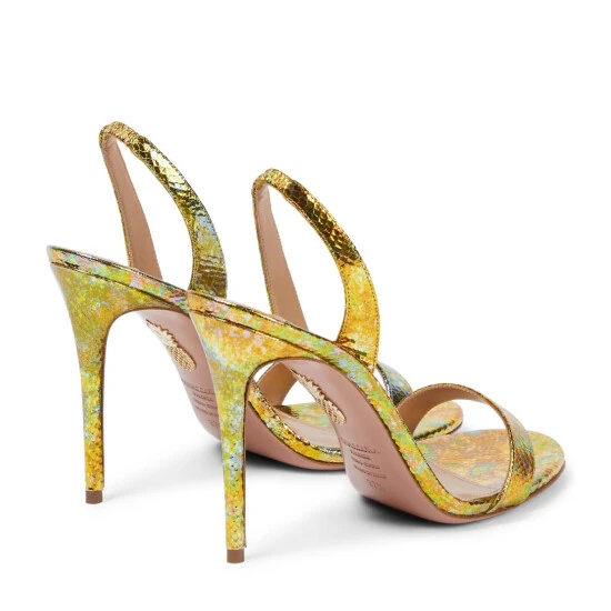 The So Nude sandals from Aquazzura get their name from their barely-there straps and are sure to make an alluring addition to your after dark edit. Crafted in Italy from metallic snake-effect leather, the simple yet elegant design stands on tall stiletto heels.