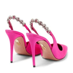 The Temptation sandals from Aquazzura are embellished with high-shine crystals for maximum effect at your next event. They have metallic leather slingback straps, PVC paneling, and peep toes.