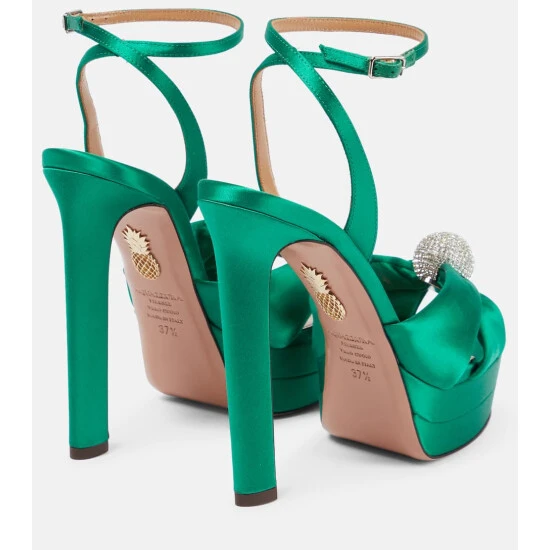 The Yes Darling 130 sandals from Aquazzura are red-carpet worthy, with their glamorous crystal disco ball embellishment over the toes. They’re made from satin with high platform heels and delicate ankle straps.